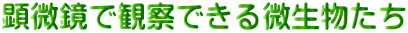 アスピディスカなどの原生動物(※1)やクマムシなどの後生動物(※2)を見ることができます。 実際に観察してみると、ほんの少しの活性汚泥の中に実に多くの微生物たちがいることが分かります。 観察できる微生物の種類や数で、活性汚泥の状態が判断できたりもします。 |